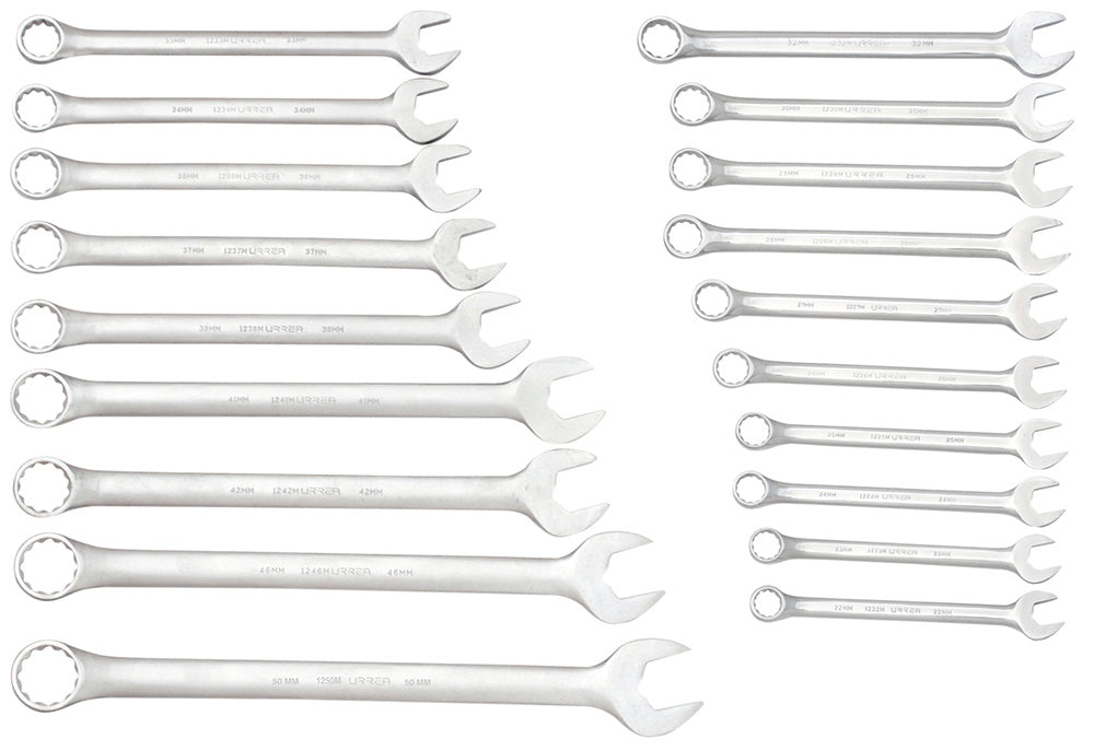 JUEGO DE LLAVES COMBINADAS PULIDO ESPEJO METRICAS 12 PUNTAS 19 PIEZAS SKU 120070M