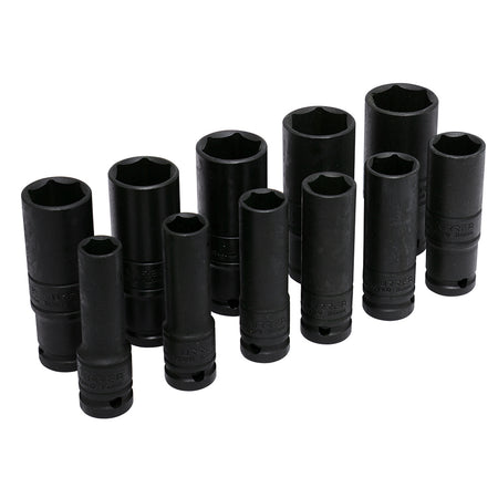 JUEGO DE DADOS DE IMPACTO LARGOS PARED DELGADA CUADRO DE 1 2 6 PUNTAS EN PULGADAS 11PZ SKU 73112D