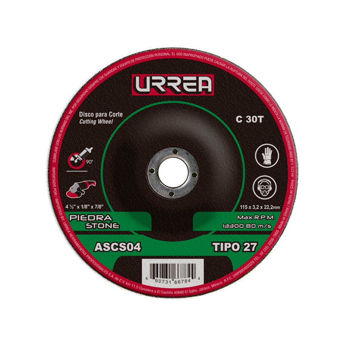 DISCO ABRASIVO TIPO 27 PARA PIEDRA 4 1 2 X 1 8 SKU ASCS04