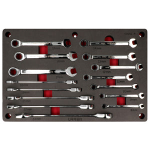 JUEGO DE LLAVES COMBINADAS PULIDO ESPEJO DE MATRACA METRICAS 12 PUNTAS 15 PIEZAS SKU CH256P
