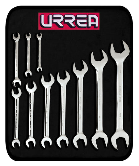 -Juego de 10 llaves españolas pulido espejo en pulgadas Urrea