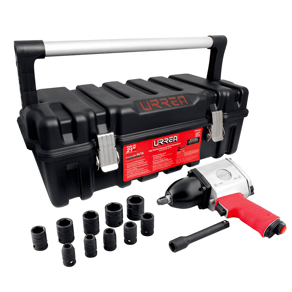 JUEGO DE PISTOLA DE IMPACTO NEUMATICA CUADRO DE 1 2 Y ACCESORIOS METRICOS 13 PIEZAS 2 SKU UP734HKM